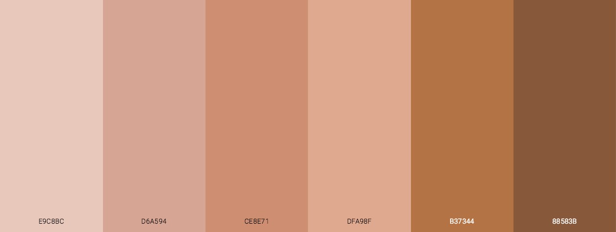 – تتكون الألوان الكاملة للبشرة من البيج، الذهبي، الأصفر، البرونز، النحاسي، الأحمر، الأسود، والأبيض.